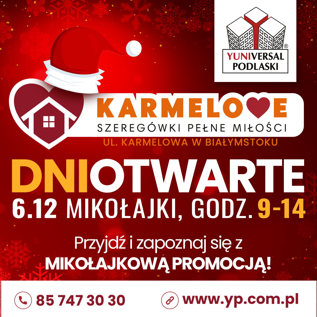 Zapraszamy wszystkich już 6 grudnia w mikołajki na dni otwarte naszej inwestycji "Karmelove". Przyjdź i zapoznaj się z mikołajkową promocją!